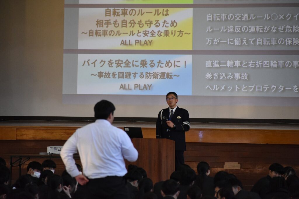 2025.12.4 交通安全教室が行われました。 本日の7限目に交通安全教室が体育館で行われました。 延岡警察署の方に交通ルールや違反した場合の罰則について詳しく説明いただきました。ヘルメットの着用は努力義務となっているので、自分の身の安全を大切にしましょう。 延岡星雲高校創立20周年記念式典が行われました。前の記事